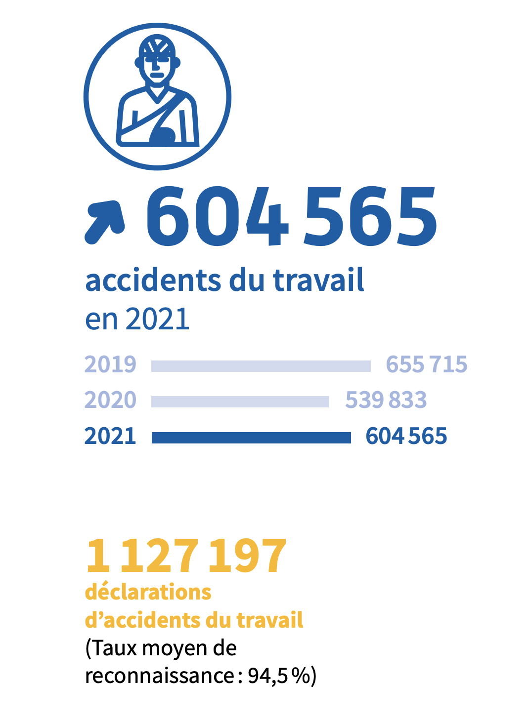 Retrouvez surtout le Rapport annuel 2021 avec toutes les statistiques secteur par secteur, ainsi que ceux des années précédentes ici : https://assurance-maladie.ameli.fr/etudes-et-donnees/2021-rapport-annuel-assurance-maladie-risques-professionnels