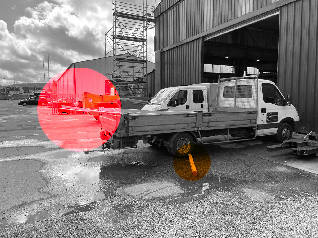 Des tôles qui dépassent de la benne, c'est dangereux ! Sans même une signalisation au bout, c'est carrément un piège pour les piétons comme pour les voitures qui passeraient trop près !